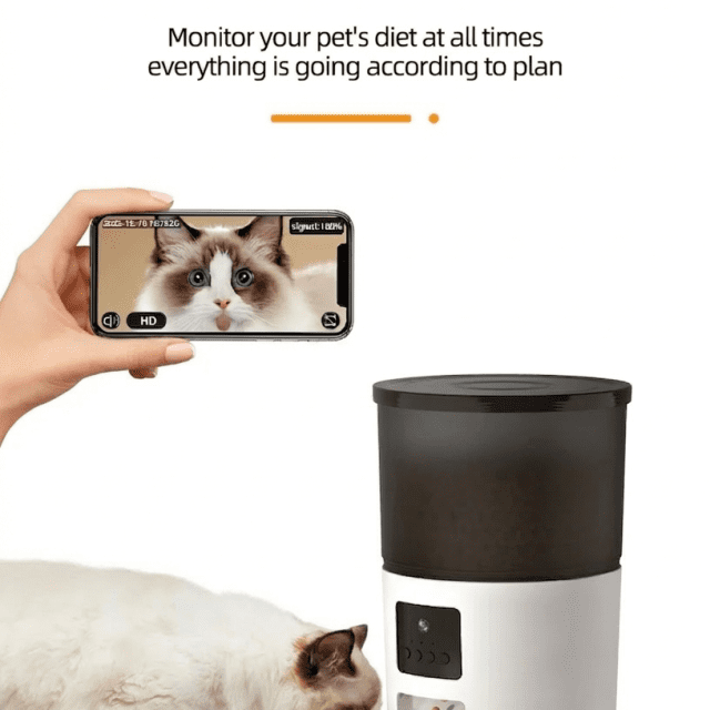 720P HD Camera: Featuring a $115^\circ$ wide-angle view, you can check in on your pet at any time to ensure they are happy and eating well.