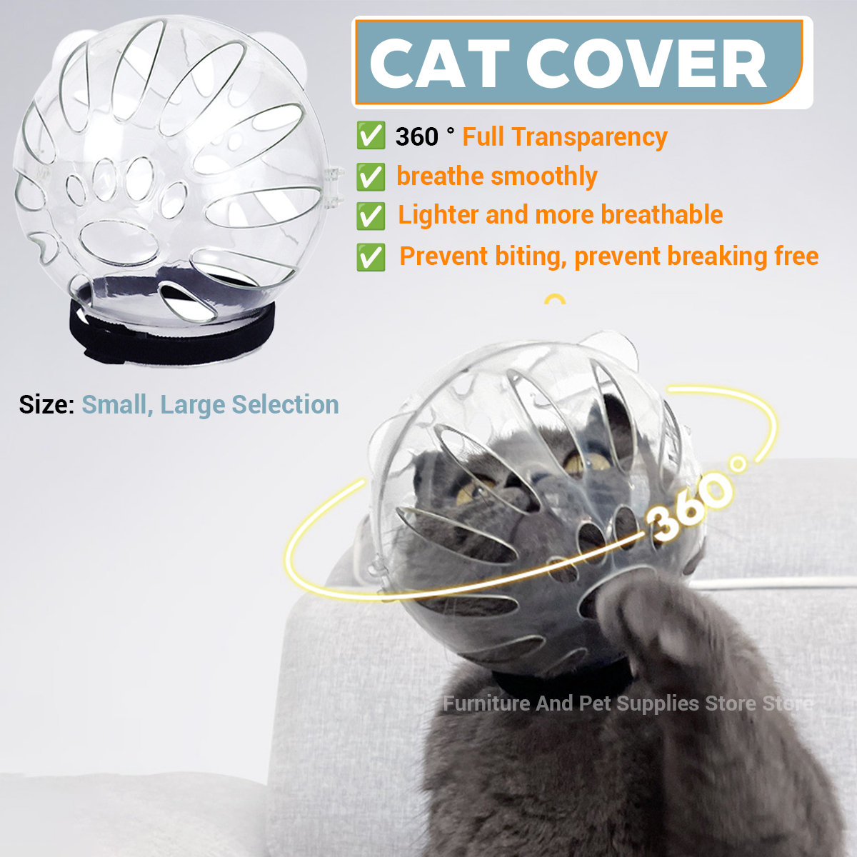 Whether it’s nail trimming, bathing, or administering medicine, this transparent hood provides a 360° view to reduce your pet’s anxiety while ensuring they can’t bite.