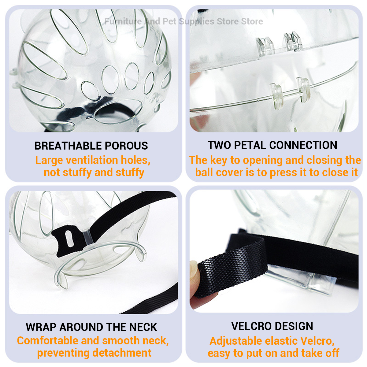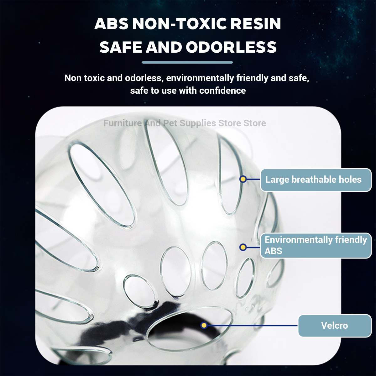 Made from high-quality, non-toxic ABS resin, this fully transparent hood offers a wide field of vision to help reduce anxiety and fear. Unlike traditional muzzles, its large hollow design and multiple ventilation holes ensure smooth breathing and a “no-stuffy” feeling in any season.
